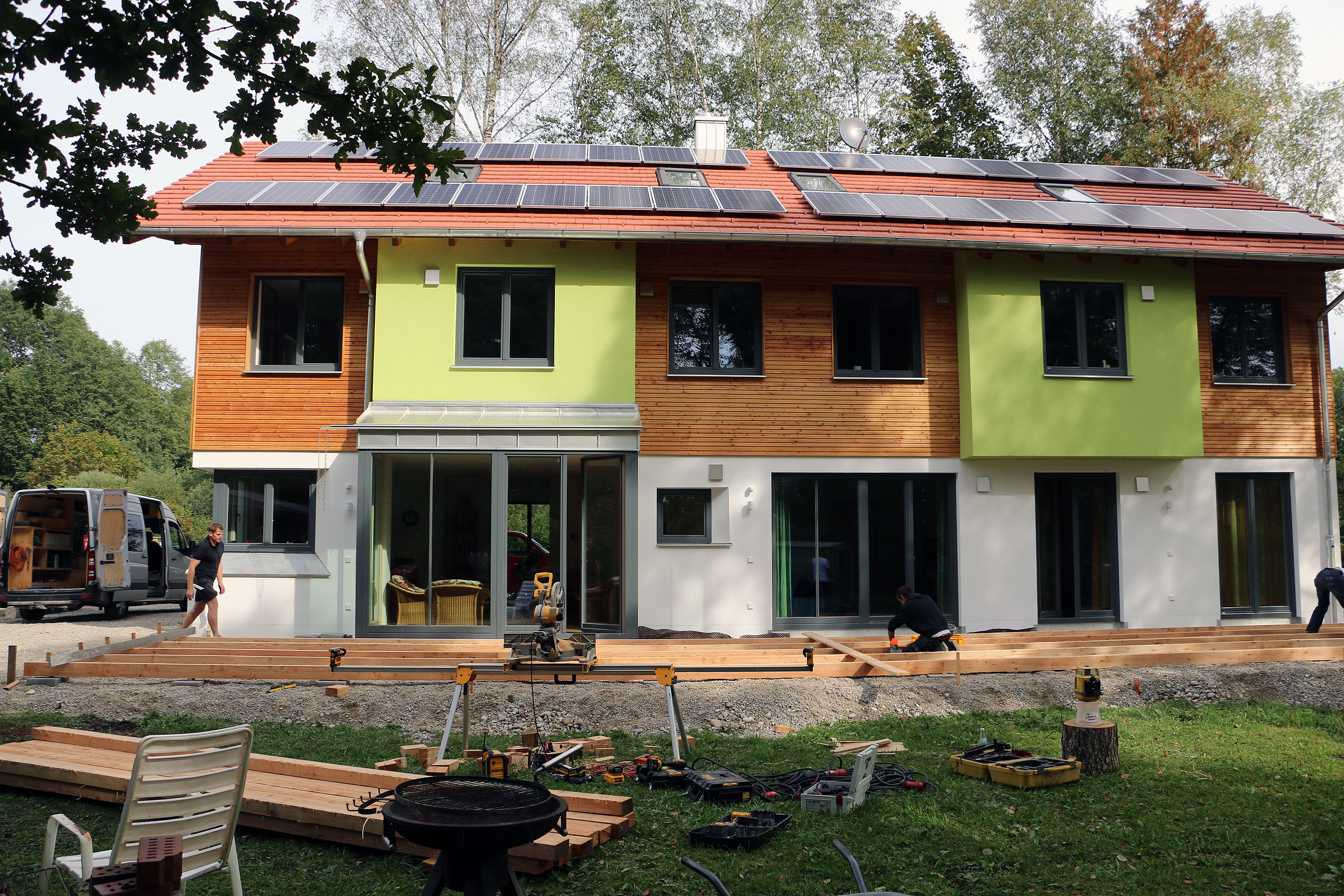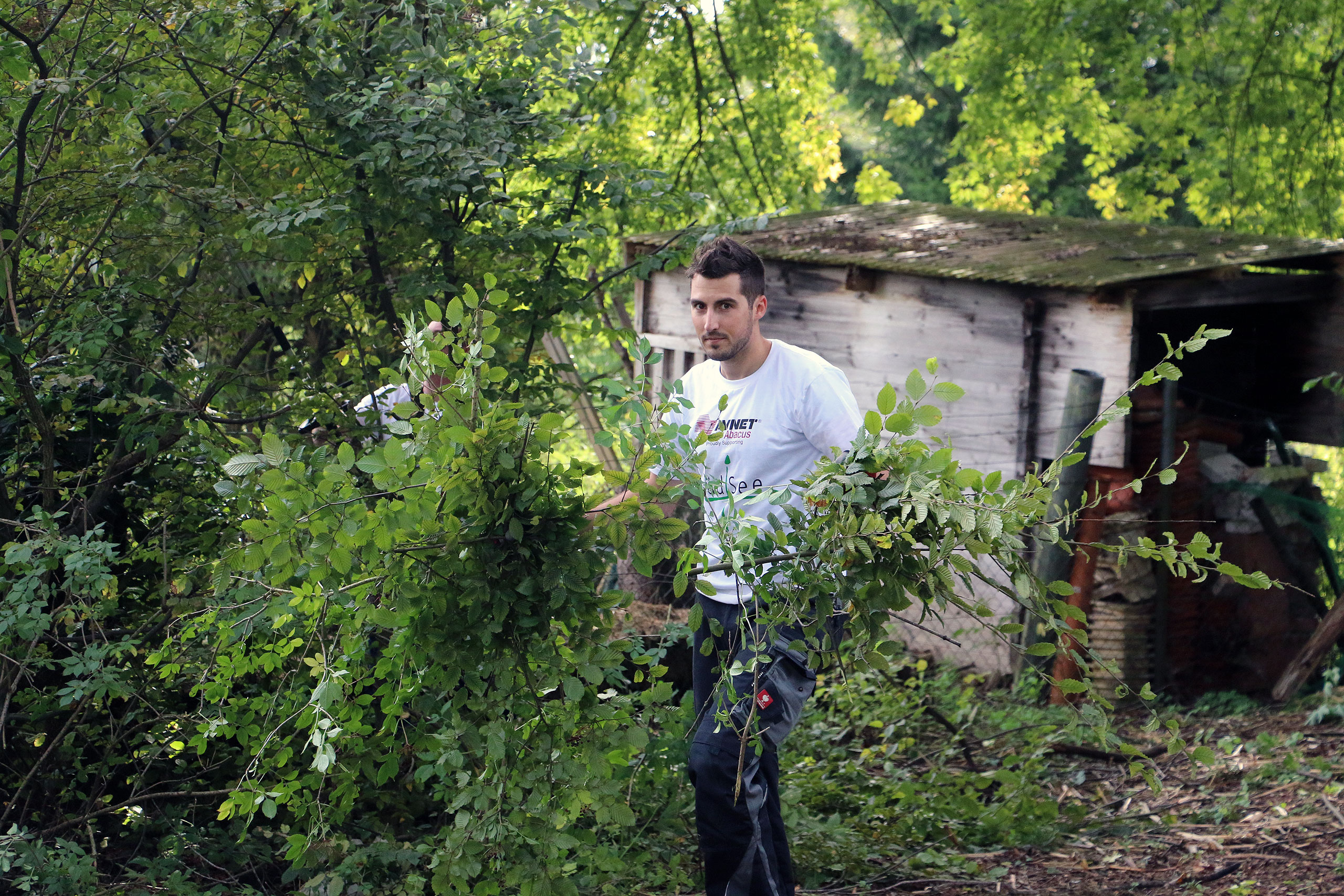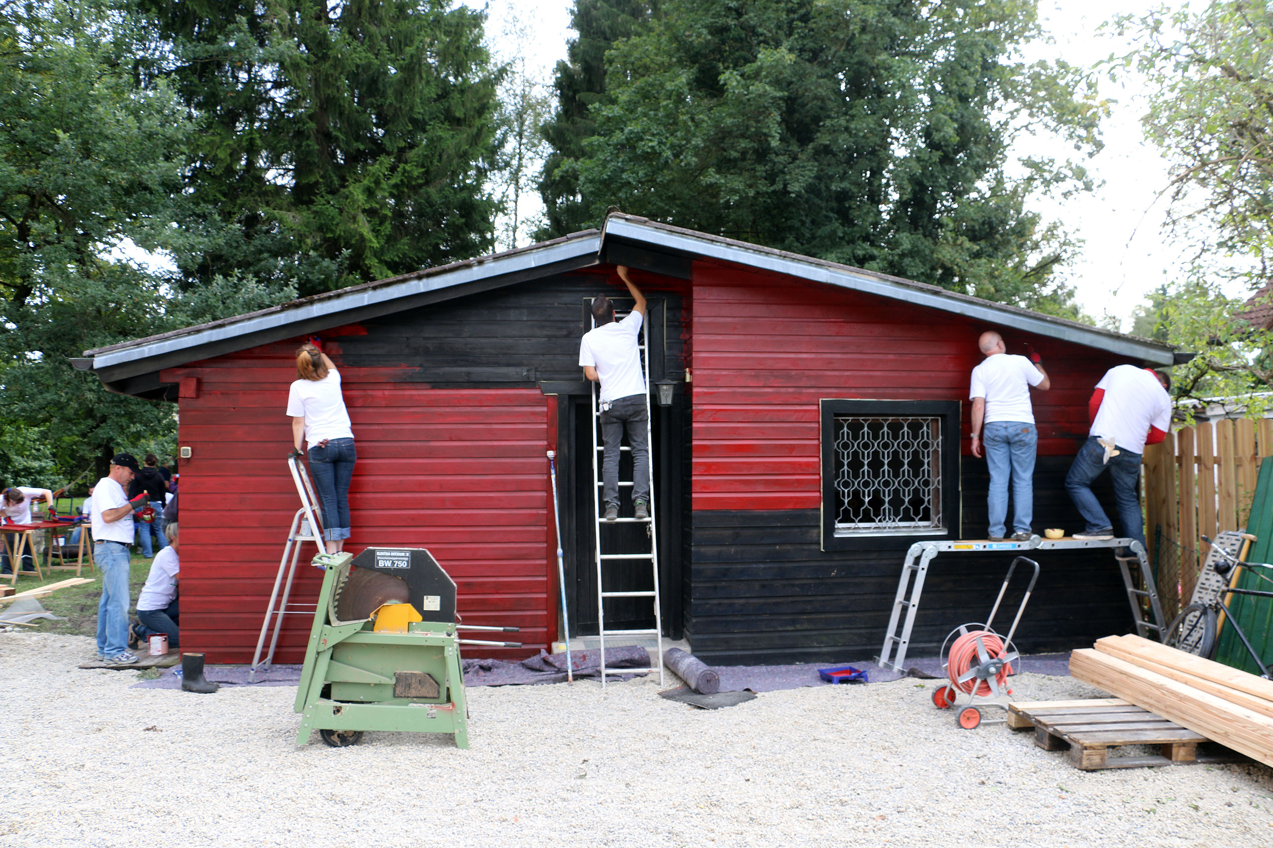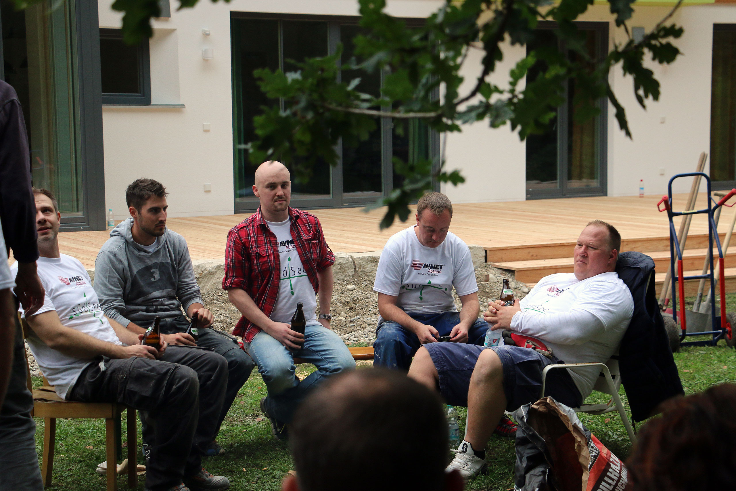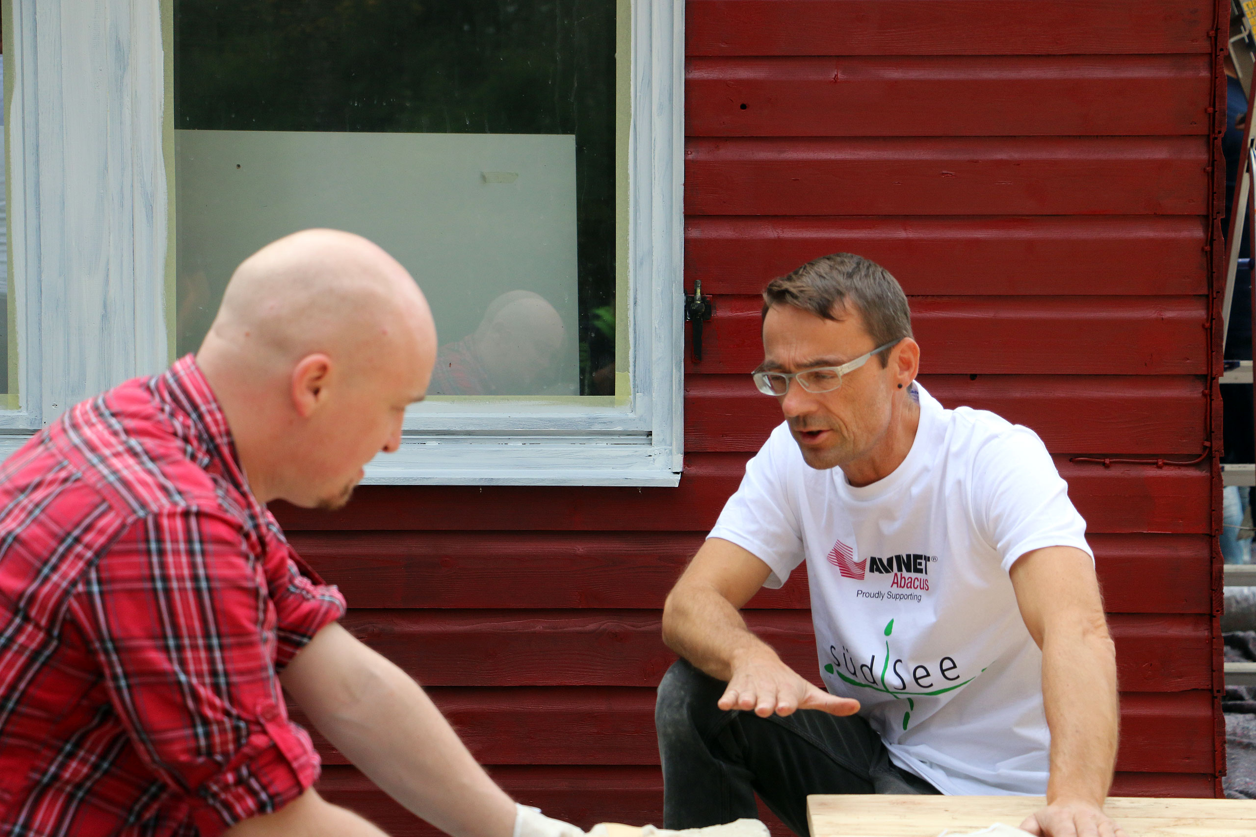 Schon morgens um 9:00 Uhr stehen die ersten hochmotivierten Mitarbeiter des Elektronikzulieferers Avnet-Abacus und dessen Zulieferer Samtec und Vishay vor der Tür des neu erbauten südSee-Hauses. Manche von Ihnen sind dafür sogar extra aus England angereist. Normalerweise kümmern sich diese Menschen um den Vertrieb von elektronischen Bauteilen und Komponenten, sitzen im Büro vor ihren Computermonitoren. Bei der südSee Kinder- und Jugendhilfe kümmern sie sich um Garten, Heckenschnitt, Terrasse und viele andere Dinge rund um das neu gebaute Haus in Seeshaupt. An solchen Tagen kann man jede Hand gebrauchen sagt Manfred Fent, Vorstand beim südSee-Verein und derzeit im Nebenberuf „Bauleiter“ und Organisator des gemeinnützigen Projektes. Das neue Haus ist großartig geworden, ganz auf die Bedürfnisse einer sozialen Einrichtung abgestimmt. Nur im Garten herrscht noch ein wenig „Unordnung“. Aber nicht mehr lange, denn heute ist ja Support-Day! Mit einem „OK, greifen wir an“ gibt Hagen Götze den Startschuss für die 19 Mitarbeiter, die Avnet-Abacus und deren Zulieferer an diesem Tag kostenlos für den guten Zweck zur Verfügung stellen. Schon heult der Dieselmotor des Häckslers auf, verschlingt Äste und Gestrüpp um sie auf der anderen Seite als Hackschnitzel wieder auszuspucken. An einer anderer Ecke im Garten wird Hand, pardon Farbe an ein kleines Gartenhaus angelegt, „Falunrot“, weil das mit den weiss gestrichenen Fensterrahmen so schön schwedisch aussieht. An wieder anderer Stelle hilft der Freiwilligentrupp den Zimmermännern beim Bau einer Holzterrasse. Die Stimmung ist super und die Mitarbeiter von Avnet-Abacus hängen sich mit aller Kraft ins Zeug. Bis Mittag ist schon einiges zu sehen, die Hecke ist gestutzt, das kleine Gartenhaus erstrahlt in freundlichem Rot und auf der Terrasse werden schon die ersten Bretter des Belages verschraubt. Dann ist erst einmal Stärkung angesagt. Der Metzger vom Ort liefert große Körbe mit Salami-, Käse- und Leberkäsesemmeln. Brotzeit! Mahlzeit! Die haben sich die fleißigen Helfer redlich verdient und schliesslich soll niemandem am Nachmittag die Kraft ausgehen. Es ist noch genug Arbeit da, schwächeln darf niemand. Nach der Stärkung folgt erst einmal ein kurzer Fototermin, denn die Mitarbeiter von Avnet-Abacus haben nicht nur ihre Arbeitskraft mit in das neue südSee-Haus gebracht sondern auch noch bei Sponsoren (Samtec, Vishay, Molex, TE Connectivity, Bourns und AVX) Geld für soziale Zwecke gesammelt. Sie überreichen dem Kassier des südSee-Verein, Michael Schmidt, noch einen Scheck über 2250 Euro. Dieser wird dankend angenommen, denn wer eben ein Haus für acht Kinder und Jugendliche gebaut hat, der braucht auch noch das eine oder andere Stück Einrichtung. Scheck übergeben, zurück an die Arbeit. Den ganzen Nachmittag wird geharkt, geschaufelt, werden Steine als Terrassenbegrenzung verlegt und gestrichen. Kurz vor 18 Uhr beginnt ein Teil des Teams von Avnet-Abacus die Feuerschalen im Garten einzuschüren. So klingt dieser Tag im südSee-Haus noch mit einem leckern Barbecue das von Tafelgold gespendet wurde, kalten Getränken und Gesprächen an der Feuerschale aus. Kurz nach Einbruch der Dunkelheit macht sich das Team wieder auf den Weg nach Hause. Es ist viel geschehen an diesem Tag. Im Haus, im Garten und in den Herzen der Menschen. Ein riesiges Dankeschön an all die großartigen und super-motivierten Helfer von Avnet-Abacus, Samtec und Vishay. Ihr habt einen unglaublich tollen Job gemacht und das südSee-Haus an diesem Tag wieder einen großen Schritt weiter gebracht! Danke!